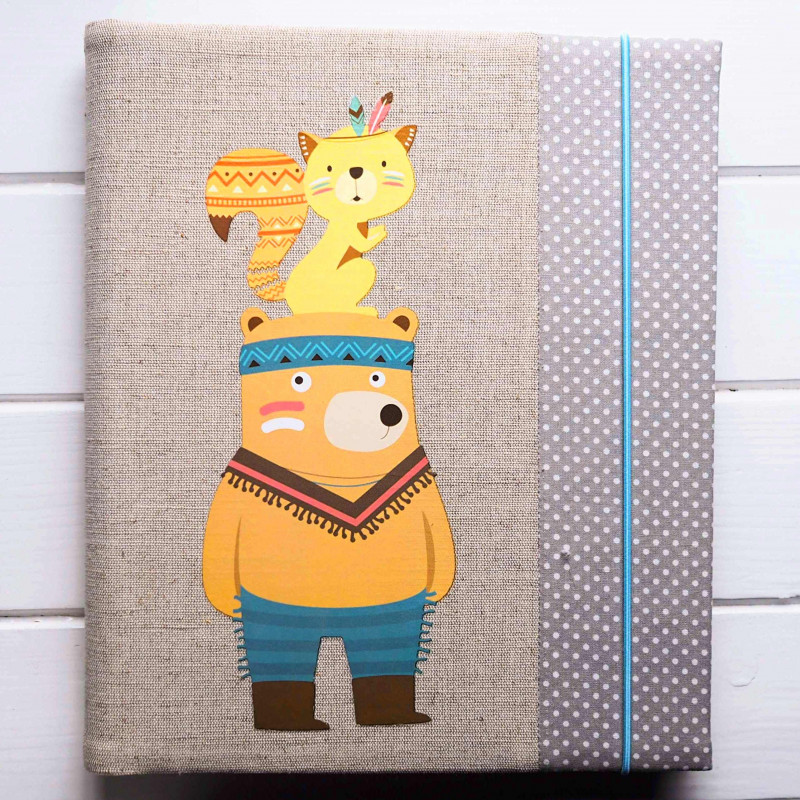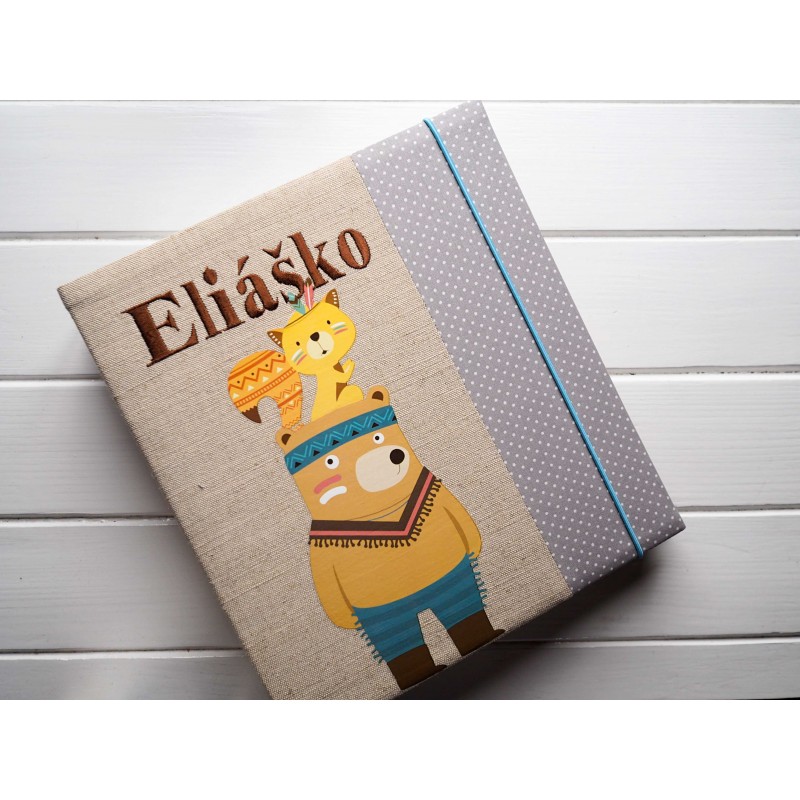 Pre malého dobrodruha (alebo ako darček pre chlapčeka) je tento album veselý a hravý – medvedík v „indiánskom“ štýle a líška na hlave vyzerajú ako parťáci z rozprávky. Sivé bodky na boku a modrá gumička tomu dodajú moderný šmrnc a album je ideálny na prvé roky, výlety aj všetky bláznivé momenty.