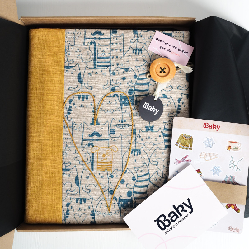 Album šijeme ručne v malej rodinnej dielni na Slovensku, preto je každý kus originál a môže sa v detailoch jemne líšiť. Zapínanie na gumičku drží tvar a zostane pekne zatvorený aj keď je plný fotiek.
