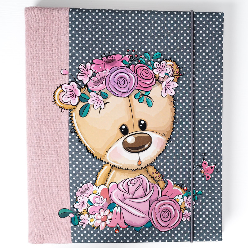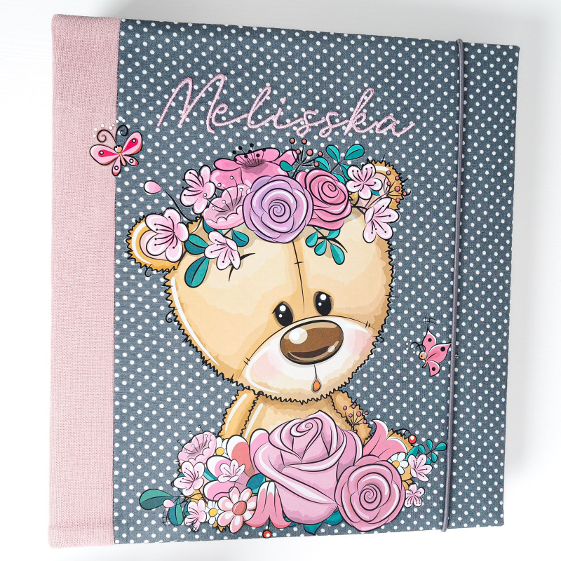 Album šijeme ručne v malej rodinnej dielni na Slovensku, preto je každý kus originál a môže sa v detailoch jemne líšiť. Zapínanie na gumičku drží album pekne zatvorený aj po naplnení fotkami a pomáha mu udržať tvar.