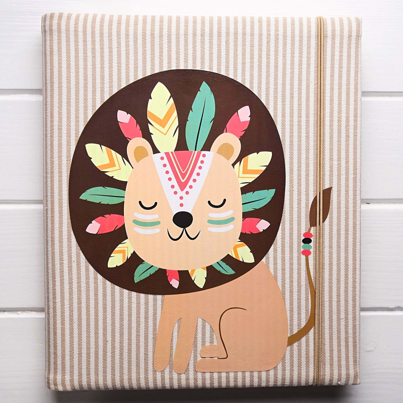 Detský fotoalbum – Levík s pierkami | samolepiaci / na fotorožky | 60–140 strán