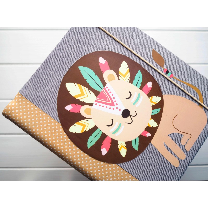 Handmade detský fotoalbum pre chlapčeka – Lev| samolepiaci / na fotorožky | výšivka mena