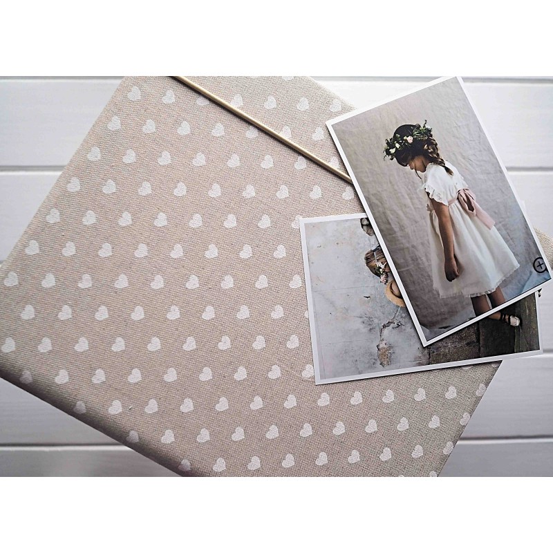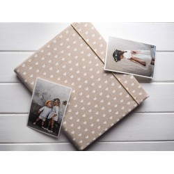 Album ručne šijeme v malej rodinnej dielni na Slovensku a zapína sa na gumičku, takže drží tvar aj keď je plný fotiek. Každý kus je vyrábaný ručne a môže sa v detailoch jemne líšiť.