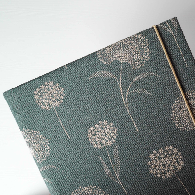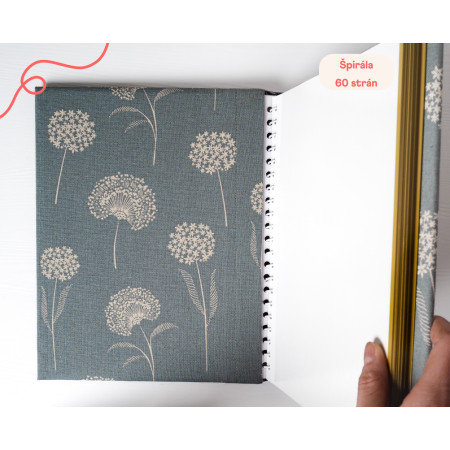 Každý kus vyrábame ručne v malej rodinnej dielni na Slovensku, preto sa môže v detailoch jemne líšiť. Praktické zapínanie na gumičku drží väzbu pokope, album si udrží tvar aj keď je plný a ľahko sa nosí aj na cesty.