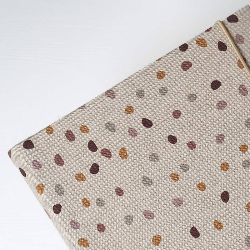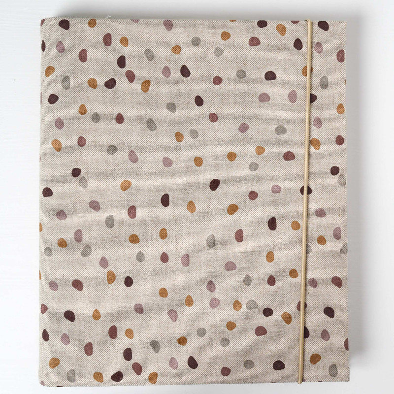 Album ručne šijeme v malej rodinnej dielni na Slovensku a zapína sa na gumičku, takže drží tvar aj keď je plný fotiek. Každý kus je vyrábaný ručne a môže sa v detailoch jemne líšiť.