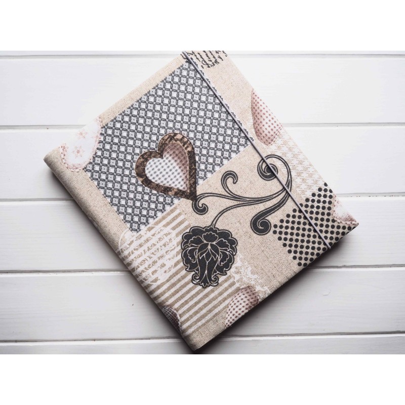 Obálka je kombináciou béžovej a sivej, s patchworkovým vzorom a decentným srdcom. Pôsobí útulne a elegantne zároveň, takže vynikne v obývačke aj spálni – často ostáva vystavený na poličke ako dekorácia.