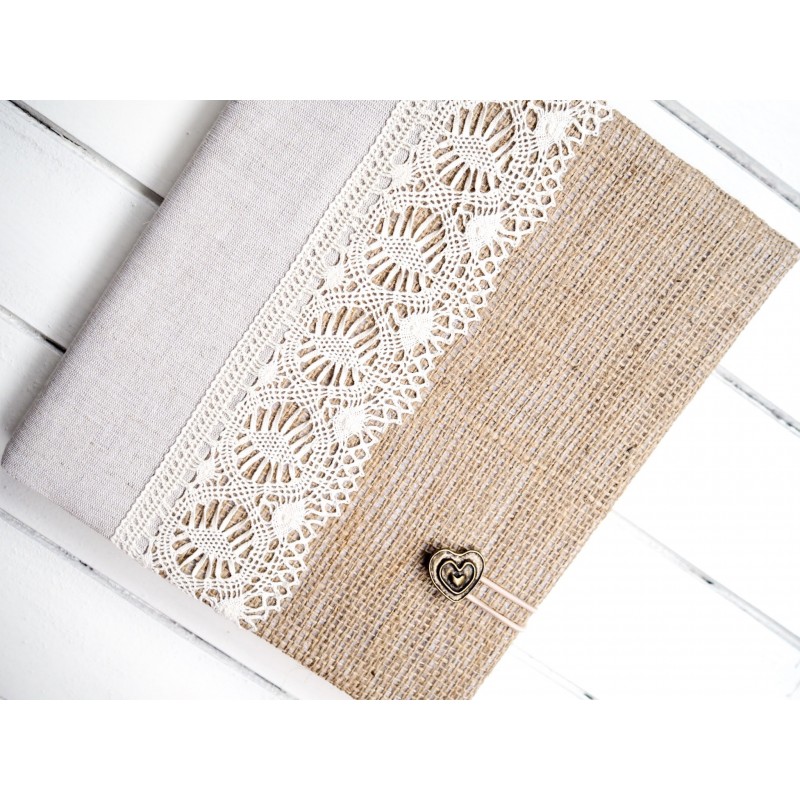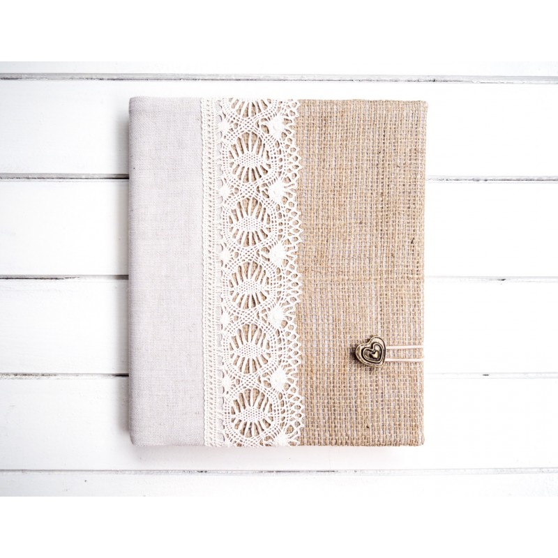 Album ručne šijeme v malej rodinnej dielni na Slovensku. Každý kus je vyrábaný ručne a môže sa v detailoch jemne líšiť. Kombinujeme pevný ľan (ľan je vyrobený v ČR) s jutou a zapínanie na gumičku udrží album zatvorený aj keď je plný.