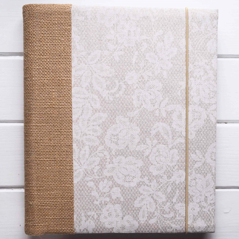 Každý kus šijeme ručne v malej rodinnej dielni na Slovensku, preto sa môže v detailoch jemne líšiť. Väzbu drží praktická gumička – udrží album pekne pokope a drží tvar aj vtedy, keď je plný spomienok a často ho beriete do rúk.