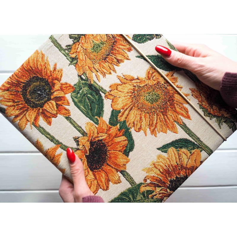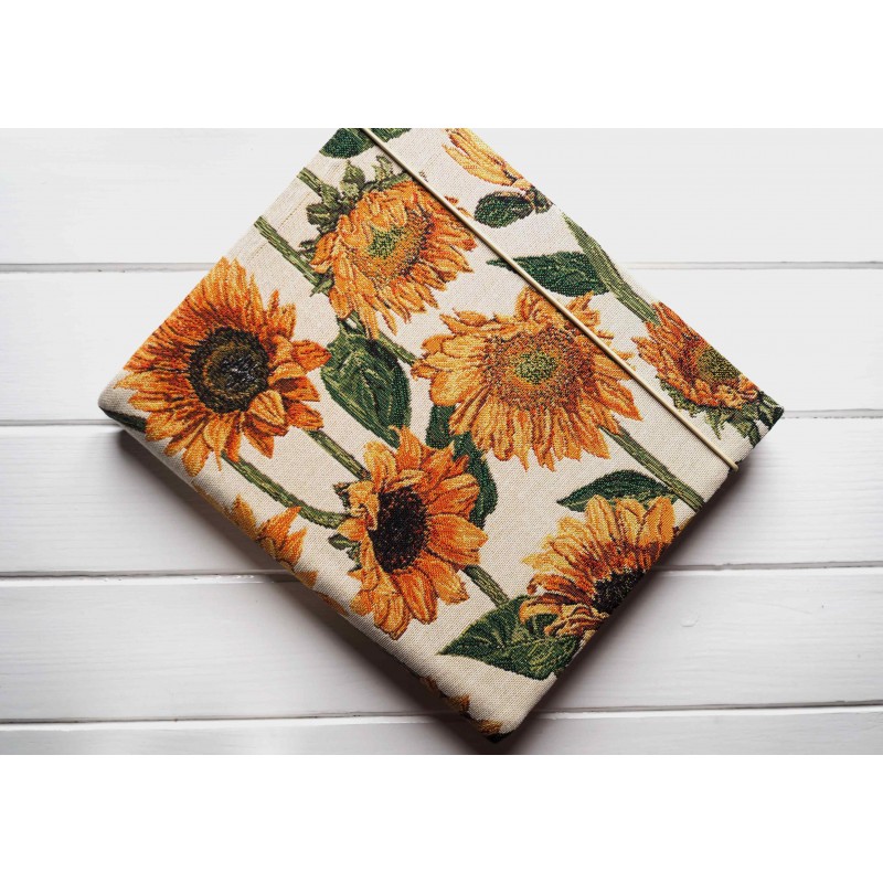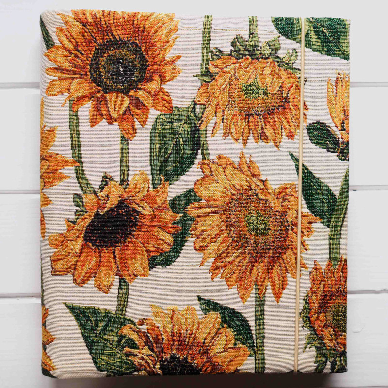 Obálka je z prémiového gobelínu so slnečnicami – výrazná, veselá a pritom vkusná. Na poličke spraví radosť každý deň a krásne zapadne do útulného bytu, vidieckeho štýlu aj modernej obývačky, kde treba trochu farby.