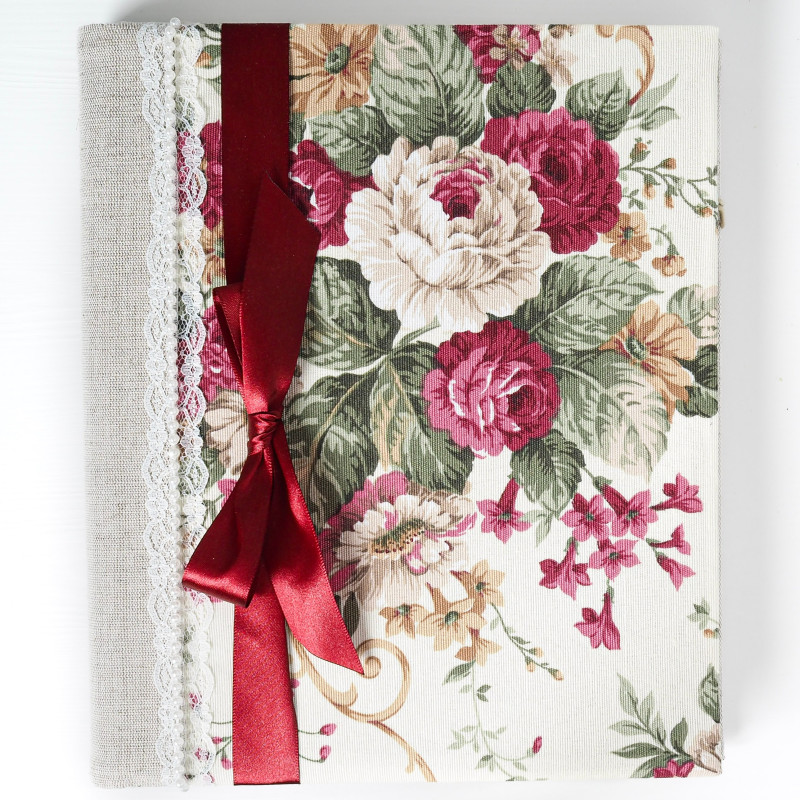 Rodinný fotoalbum – Romantické kvety & bordová stuha | Vintage Bouquet