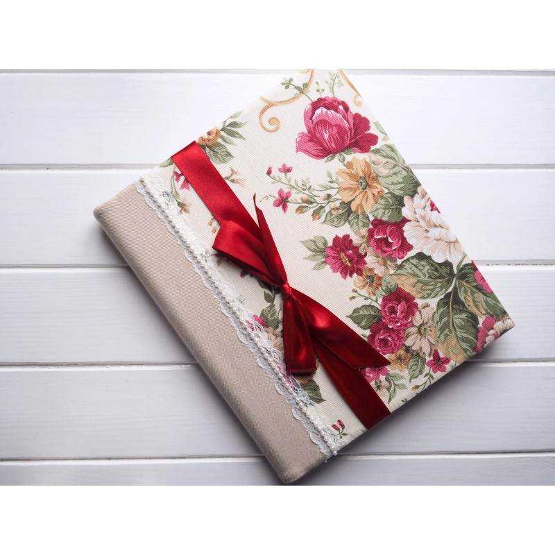 Na obálke sú bohaté kvety v vintage štýle, jemná čipka a bordová stuha, ktorá mu dáva slávnostný nádych. Vynikne v obývačke aj spálni, najmä v útulnom, romantickom alebo vintage interiéri – a pokojne môže ostať vystavený ako dekorácia.