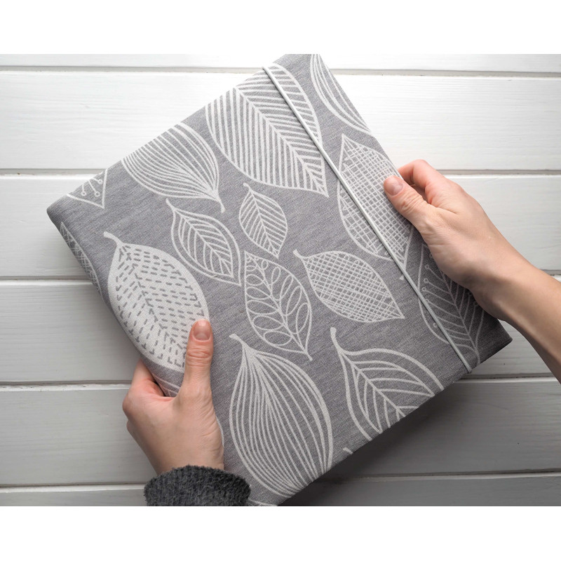 Každý kus je vyrábaný ručne a môže sa v detailoch jemne líšiť. Vzniká v malej rodinnej dielni na Slovensku, má pevné spracovanie a zapínanie na gumičku, takže drží tvar aj keď je album plný.