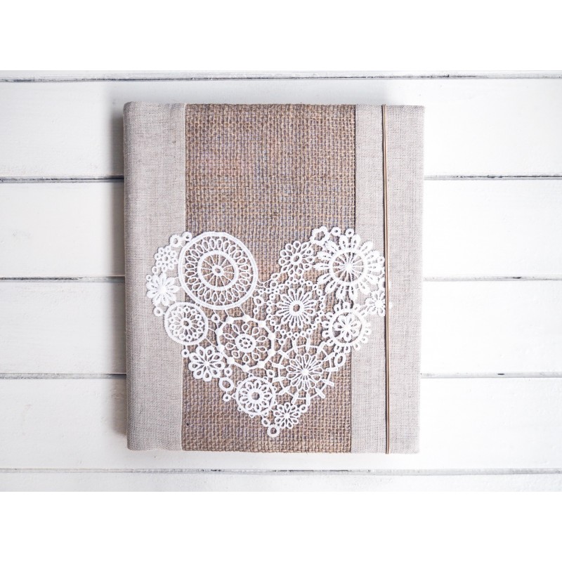 Pre romantickú nevestu (alebo ako dar pre novomanželov) je tento album nádhernou voľbou – prírodný ľan v kombinácii s jutovým pásom a veľkým čipkovaným srdcom pôsobí nežne, elegantne a nadčasovo. Hodí sa na svadobné spomienky, zásnuby aj spoločné chvíle, ktoré si chcete odložiť „na vždy“, a zároveň krásne zapadne do interiéru na poličke v spálni či obývačke.