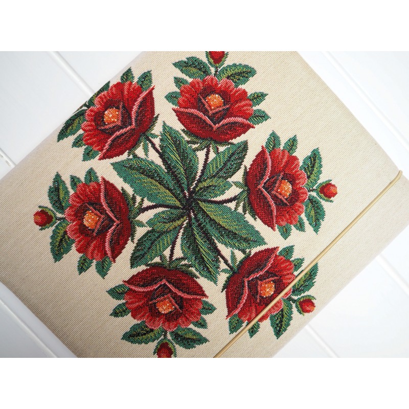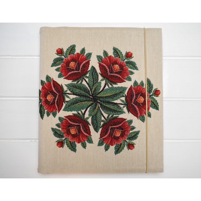 Folklórny fotoalbum je ručne ušitý z krásnej kvalitnej gobelínovej látky s kvetmi.