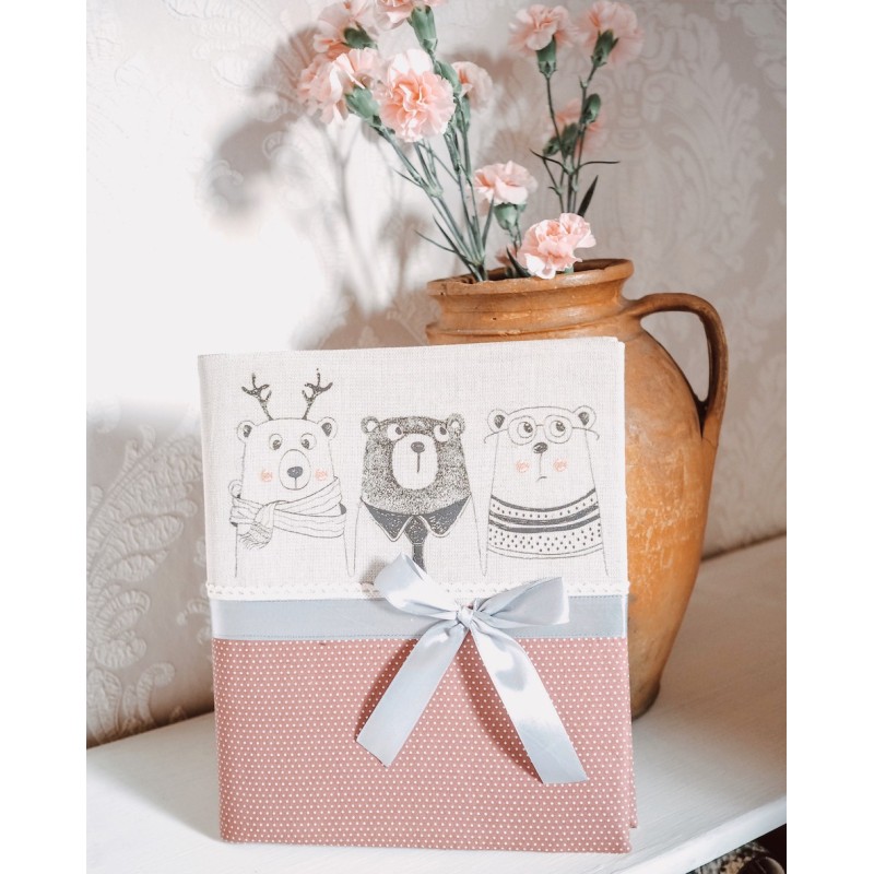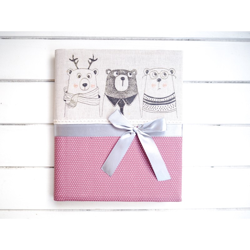 Detský fotoalbum Zimné medvedíky – ružový | samolepiaci / na rožky | 60–140 strán