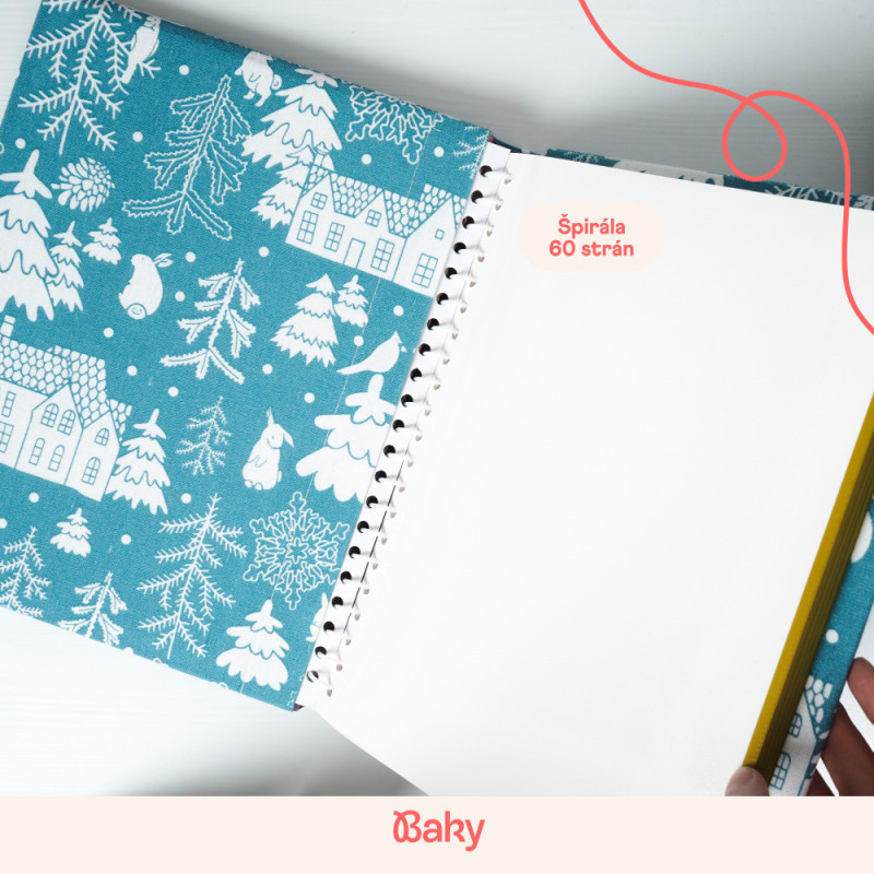 Každý kus šijeme ručne v malej rodinnej dielni na Slovensku, preto sa môže v detailoch jemne líšiť. Väzbu drží praktická gumička – udrží album pekne pokope a drží tvar aj vtedy, keď je plný spomienok a často ho beriete do rúk.