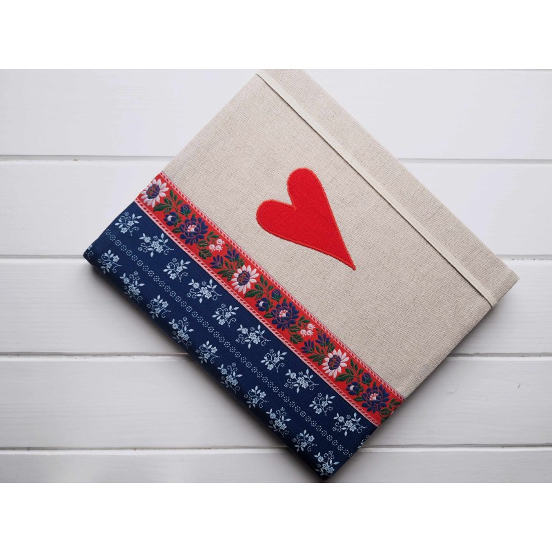 Kombinácia prírodného ľanu, modrého vzoru a folklórneho pásu pôsobí krásne slovensky a pritom vkusne. Červené srdce v strede je jasný odkaz – toto sú naše chvíle. V obývačke vyzerá nádherne a často ostáva vystavený ako dekorácia.