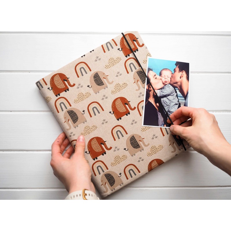 Pre bábätko a prvé roky života – tento handmade detský fotoalbum je ideálny na fotky z tehotenstva, narodenia, krstu či prvých narodenín. Motív sloníkov a dúhy je jemný a nadčasový, vhodný pre dievčatko aj chlapčeka, a album sa krásne hodí aj ako dekorácia v detskej izbe.