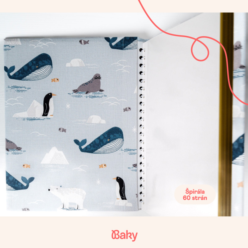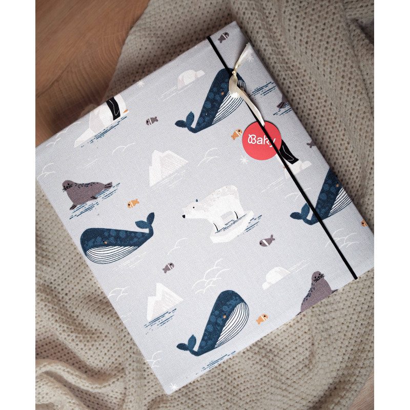 Fotoalbum je ručne vyrábaný na Slovensku z kvalitnej bavlnenej látky s motívom zvierat žijúcich v oceáne.