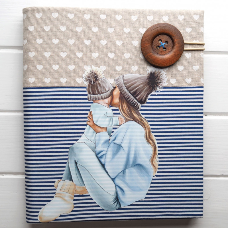 Detský fotoalbum s motívom mamy so synčekom je navrhnutý ako spomienkový album na prvé spoločné chvíle.